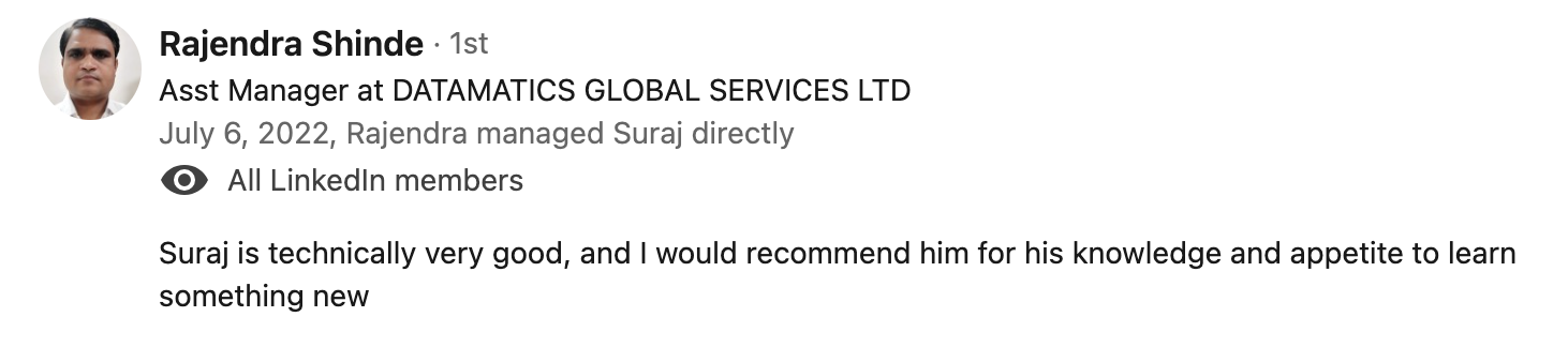 - Performance Excellence Award from client TATA AIA Life for the year 2017-18